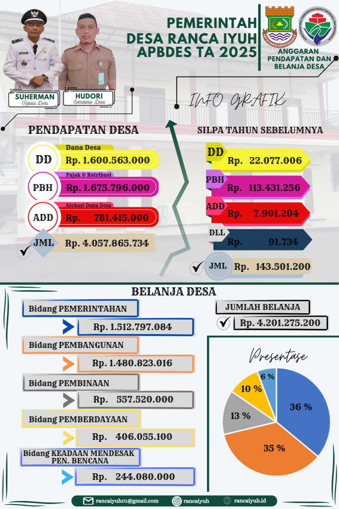 Infografis desa adalah media visual yang menyajikan data dan informasi penting secara ringkas, menarik, dan mudah dipahami. Dengan infografis, masyarakat dapat lebih cepat mengakses perkembangan desa, program pemerintah, layanan publik, serta potensi ekonomi dan budaya. Transparansi, edukasi, dan partisipasi warga menjadi lebih efektif, mendukung pembangunan desa yang maju, mandiri, dan berdaya saing.
